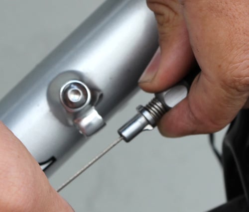 These QR cable housing stops allow your to easily lube your shift housing without unbolting them from the frame. Machined alloy barrel adjusters offer ergonomic adjustment on the stand or on the road. Makes it easier for you to disassemble your bike for travel, too. Sold in pairs.