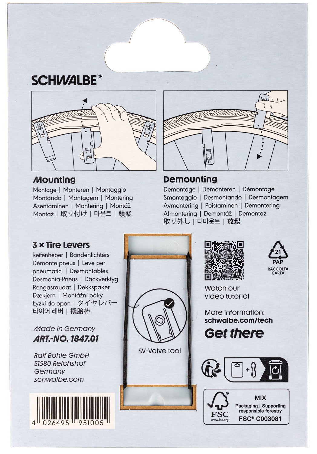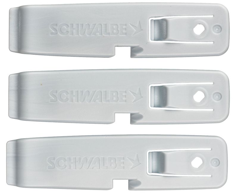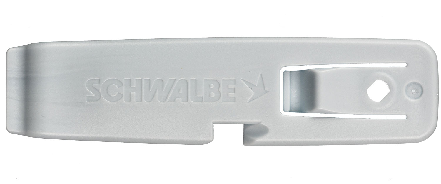Easy tire changing with the tire lever set from Schwalbe. The new shape and surface of the tire lever makes mounting and demounting a tire even easier. For the hand and for the tire!