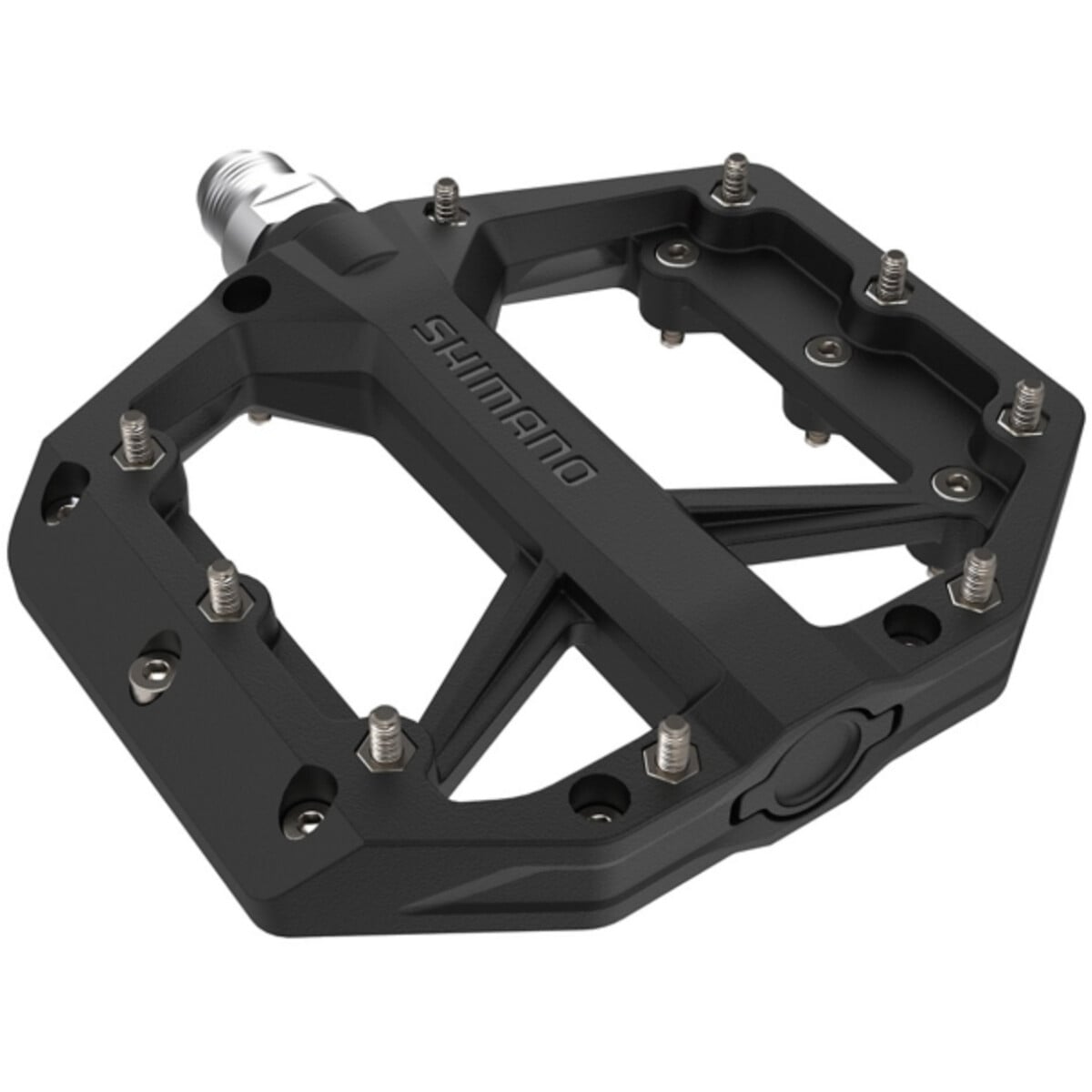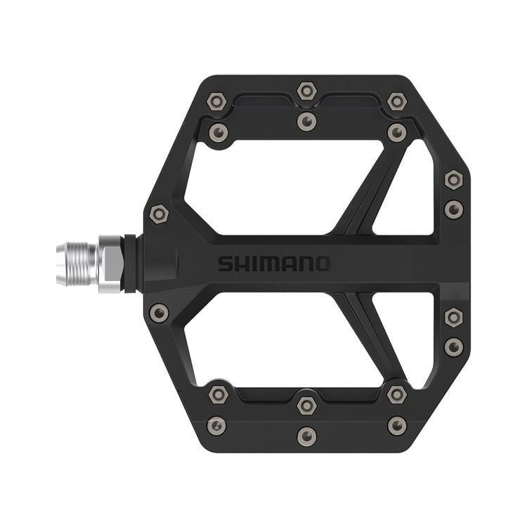 GR400 are grippy flat pedals with a trail riding platform shape that feels stable and secure underfoot. Experience even better bike control by pairing with SHIMANO GR series shoes.