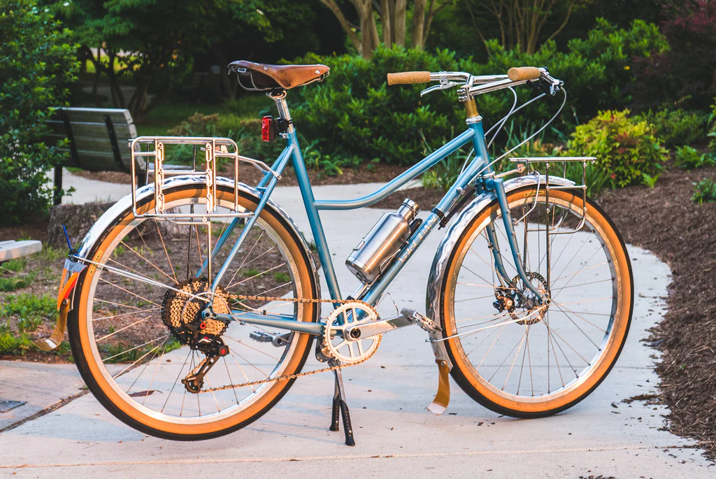 The graceful, swoopy top tube is what we call a Low-Kicker. While especially useful for easily mounting and dismounting with a loaded bike, the lowered top tube also makes the frequent getting on and off the saddle in urban environments more comfortable. Lastly, for those that have limited flexibility, it allows the rider to have a super practical and beautiful bike with modern touches and clearances – something that was, until now, significantly lacking.